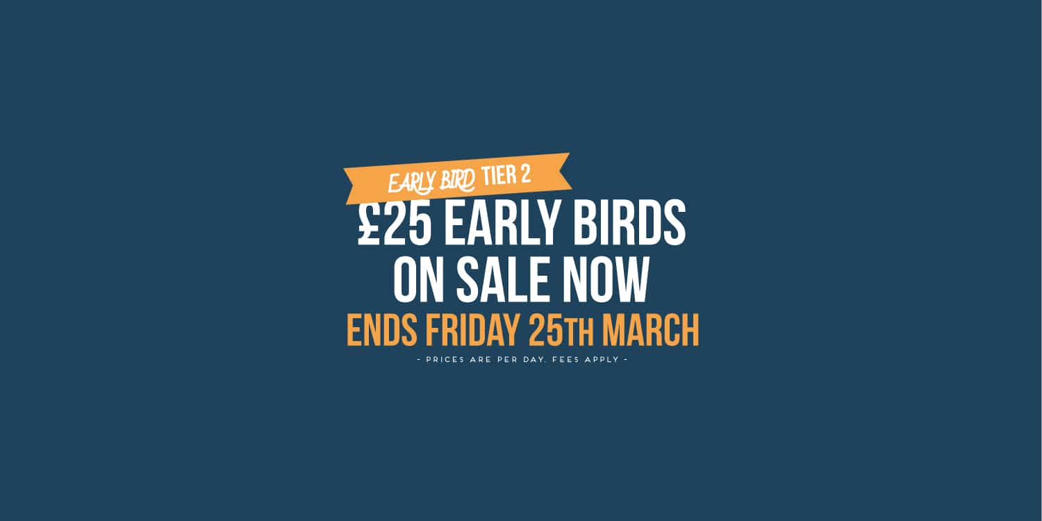 That’s right folks, Tier 2 early bird tickets priced £25 end on Friday 25th March.