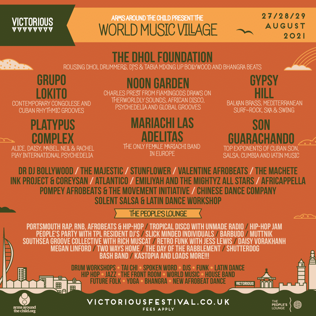 From Cuban rhythms, rap, reggae, bhangra and hip hop to Tai chi and drum workshops, the world music village is the place to be at Victorious Festival 2021