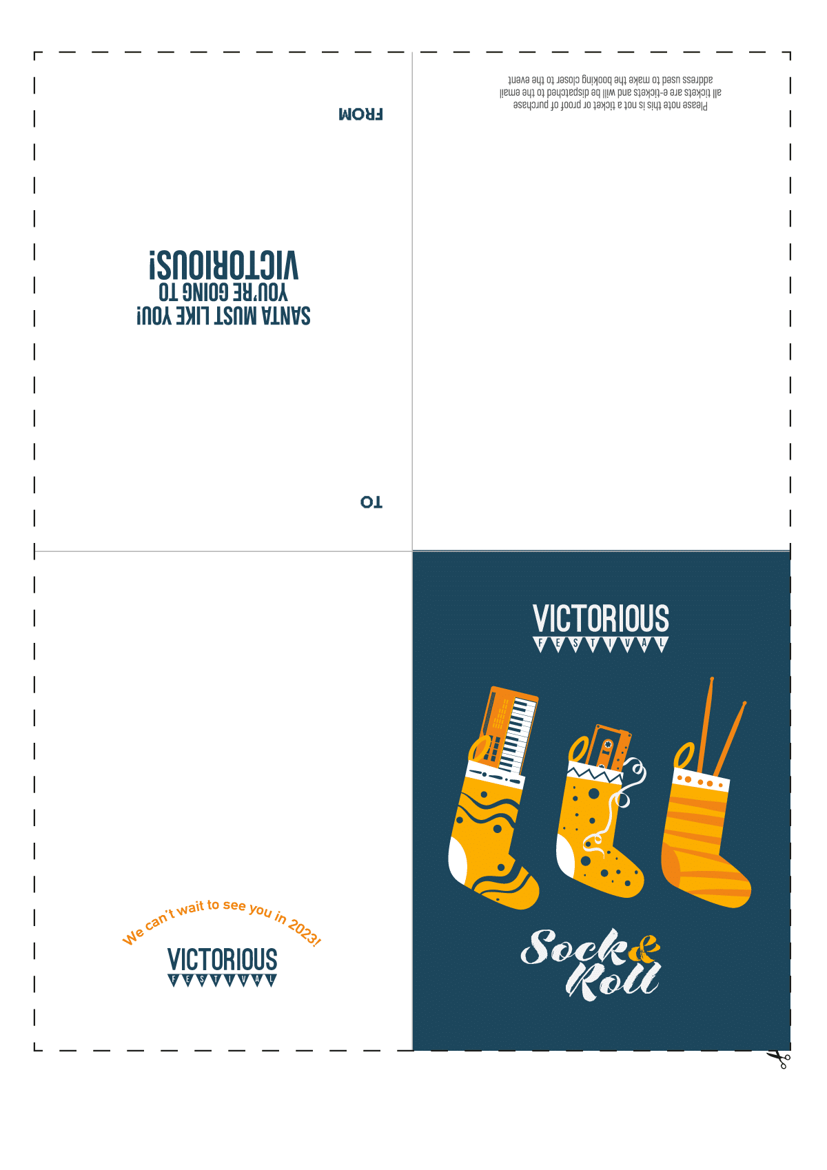 If you’re planning on giving the gift of Victorious Tickets to someone this Christmas, why not print out our handy Christmas Card?