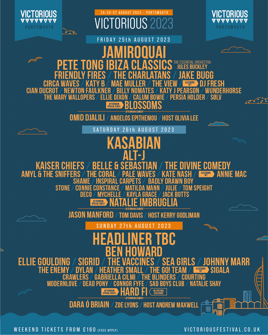 Infectious Indie bands The Charlatans, Blossoms and Friendly Fires also join the bill. Annie Mac will keep the party going with a DJ set on Saturday. Talented Singer- Songwriters Ellie Goulding and Natalie Imbruglia will bring their huge sing-along hits to Southsea. Plus, Belle and Sebastian, Jake Bugg, Kaiser Chiefs, Sea Girls! With more artists across the weekend, there really is something for everyone to enjoy!